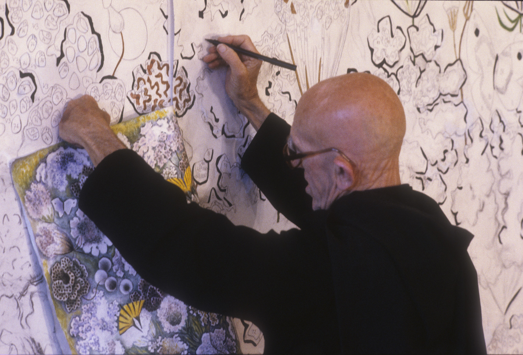 1992 Dernier carton de l'artiste tissé à l'atelier Goubely, Chèvres du Larzac. Continue à dessiner sur le motif. Prépare de nouveaux cartons sur le thème des ombelles, qui resteront inachevés, comme L'Herbe qui lève ou Horreur du vide …