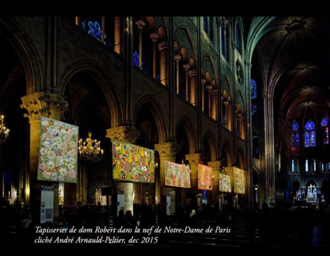Depuis décembre 2024, dans le cadre de la réouverture de la cathédrale Notre-Dame de Paris, le Musée Dom Robert prête une tapisserie de Dom Robert, Laudes !