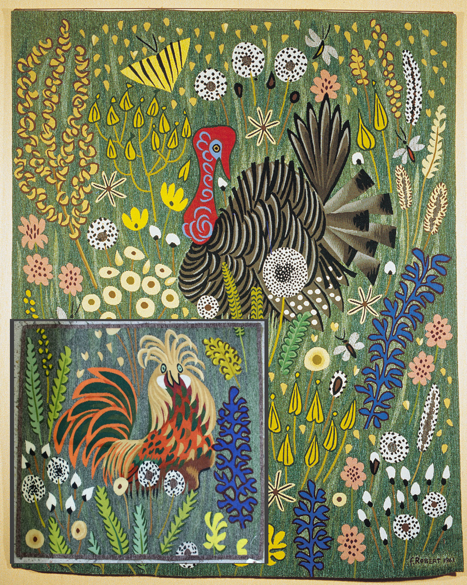 Ainsi, plus d'une vingtaine de ce Petit coq, extrait de la tapisserie L'Herbe haute composée en 1961, a été tissé à partir de 1967.