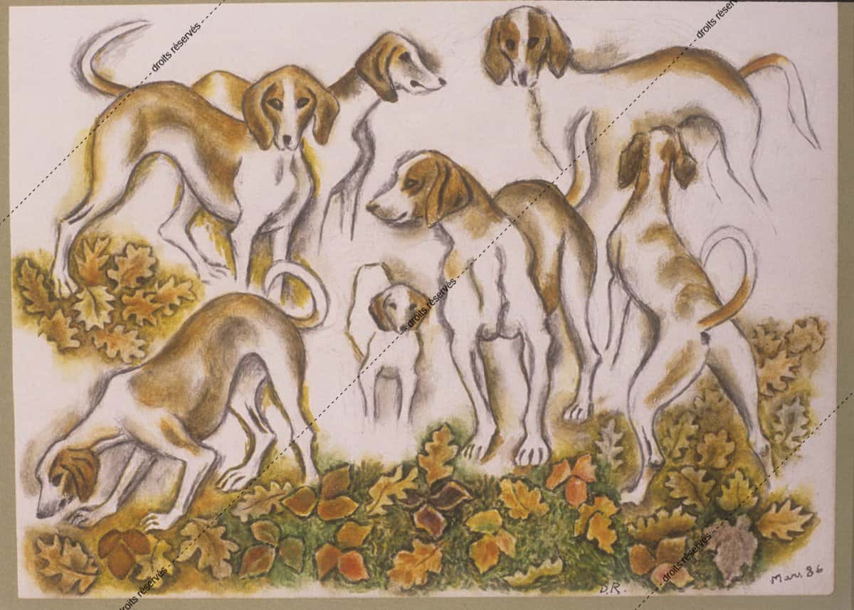 Chiens de chasse et feuillage d’automne