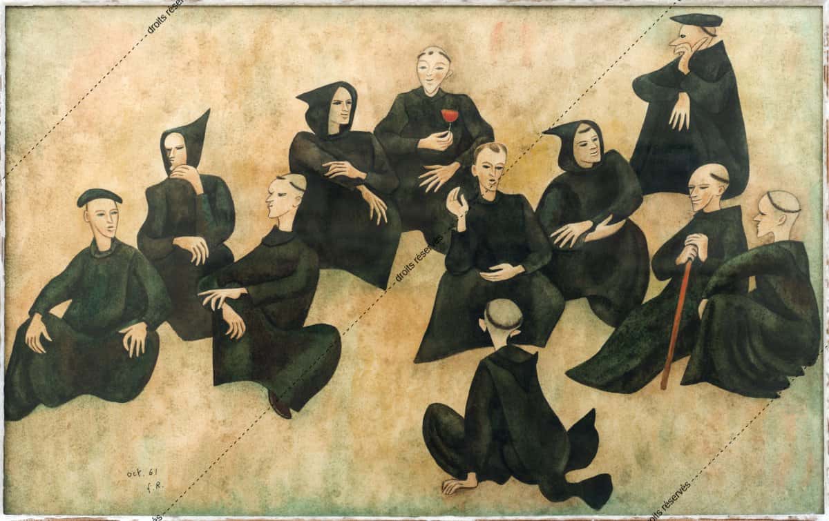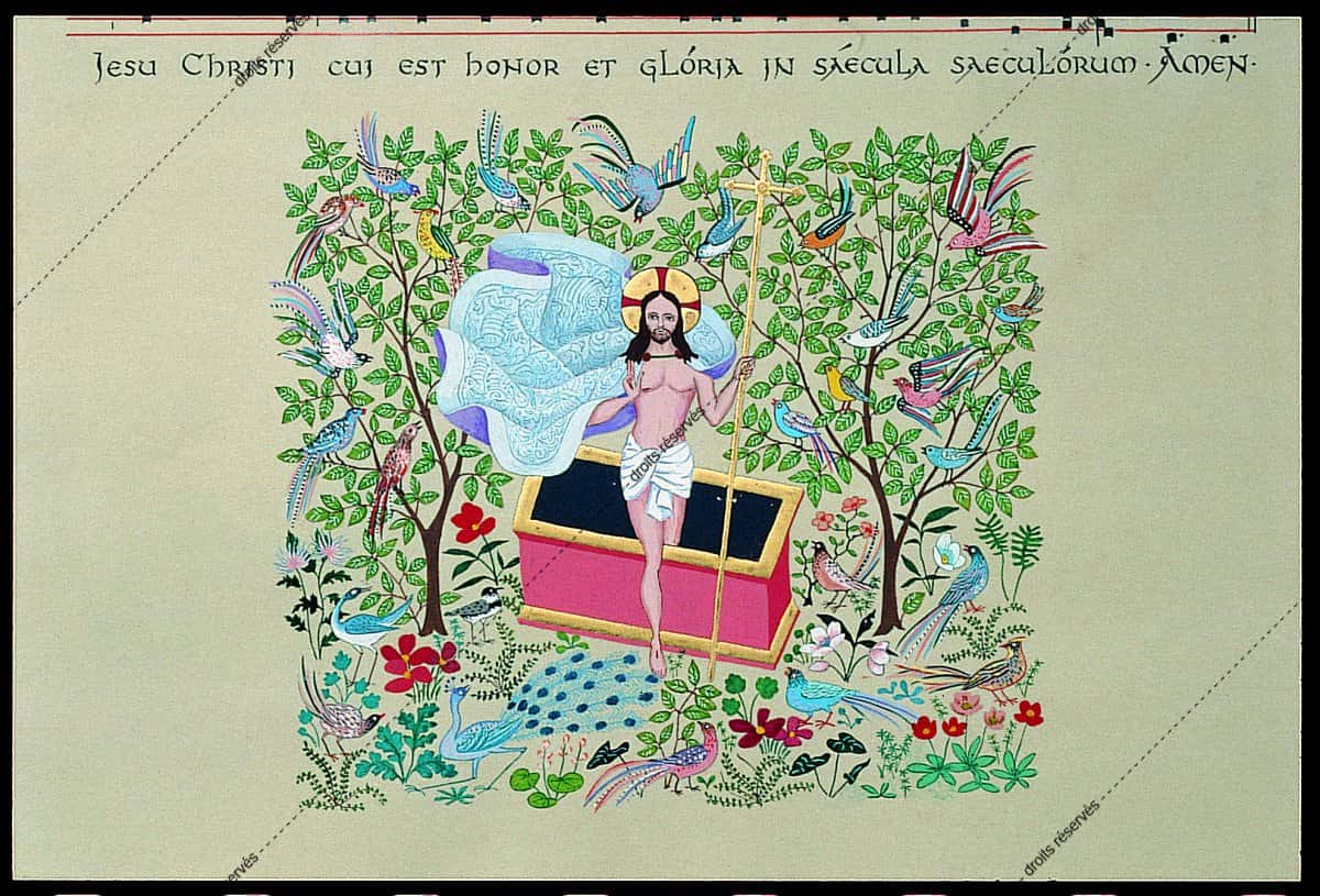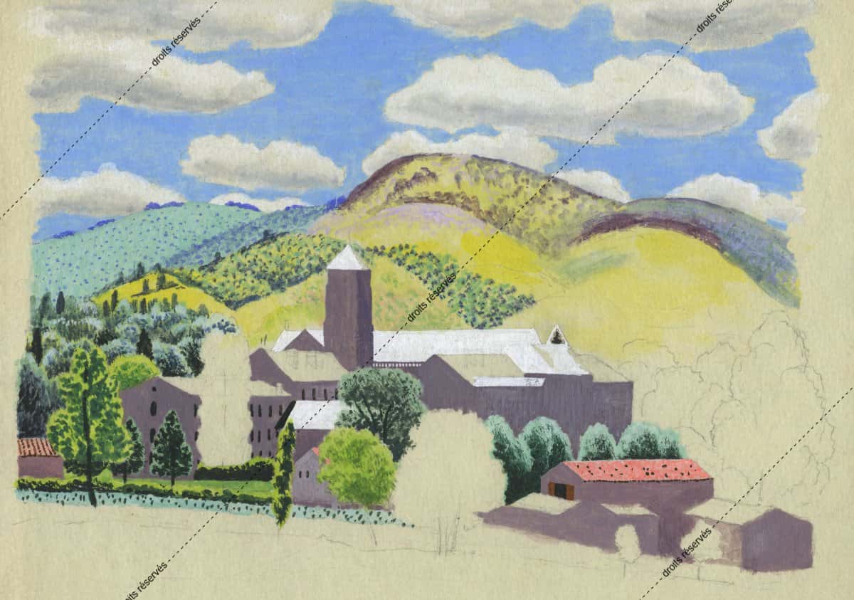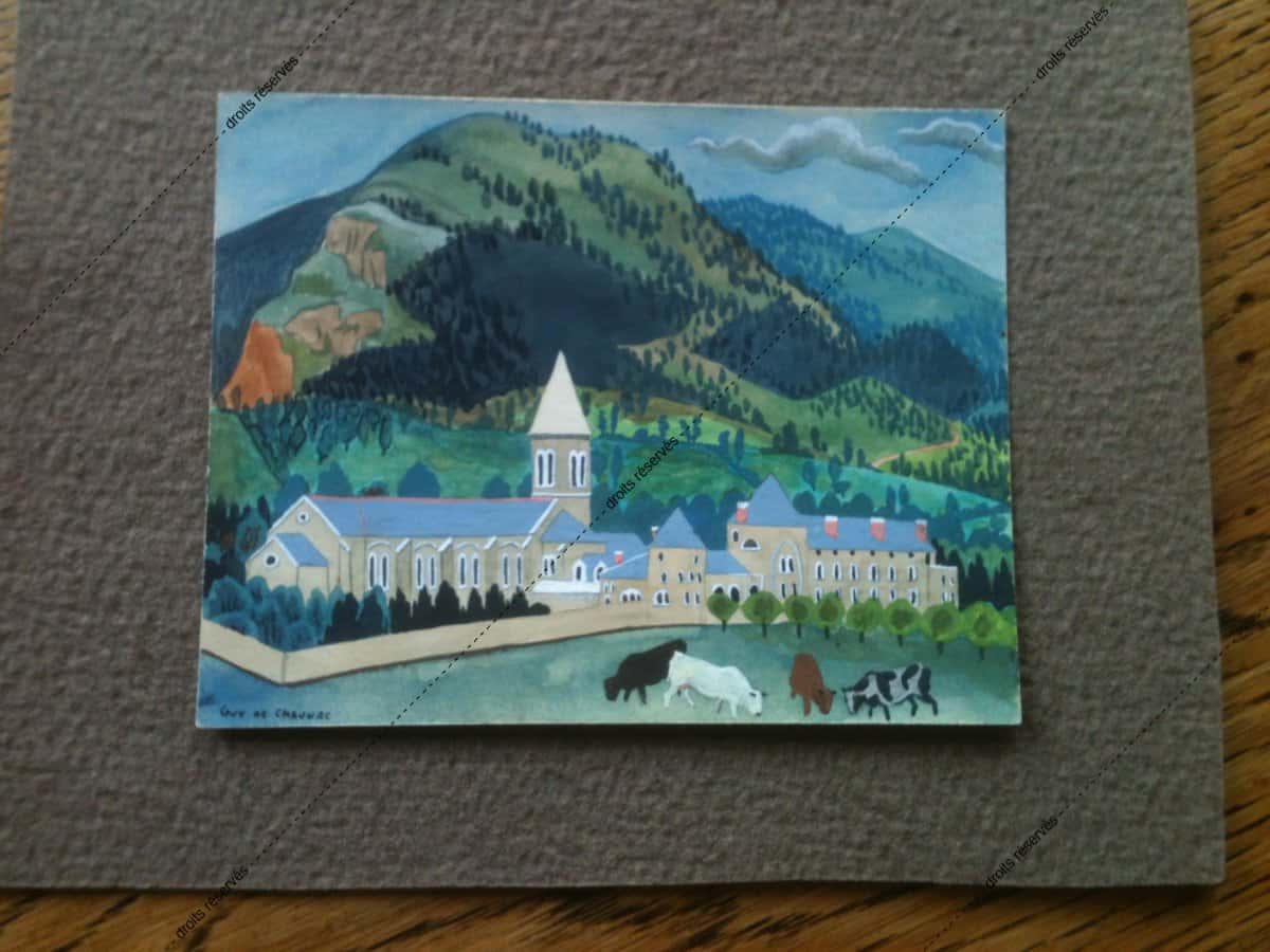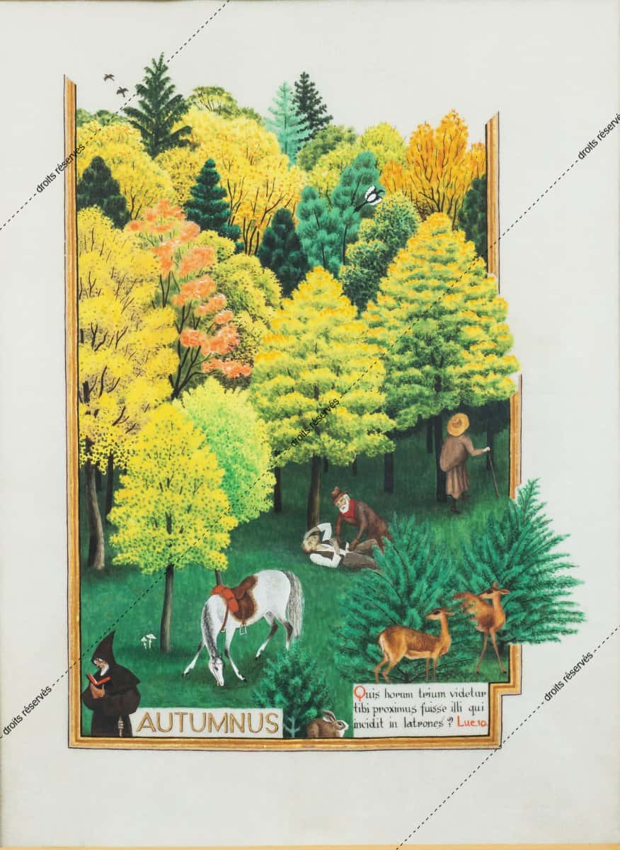 Les aquarelles, enluminures, gouaches présentées dans cette galerie montrent les différentes facettes de cette expression picturale que Dom Robert a pratiquée tout au long de sa vie. La plupart font partie de collections particulières. Les pièces déposées au musée comportent un * après leur titre.