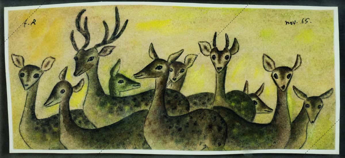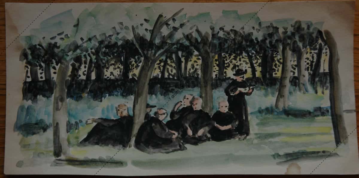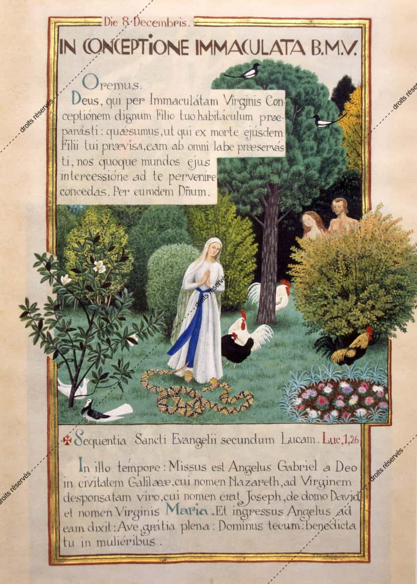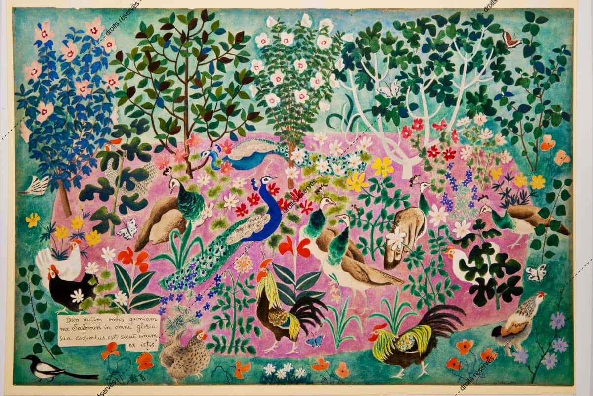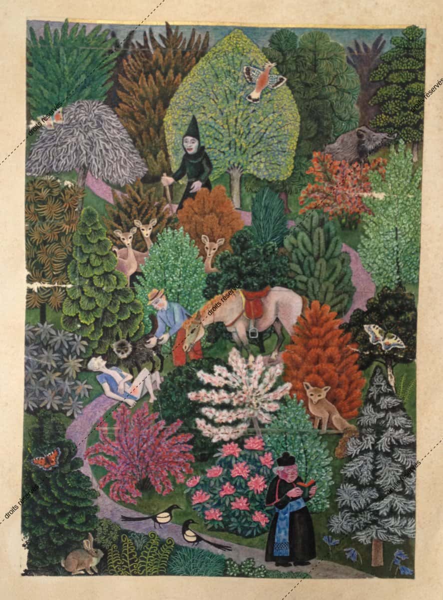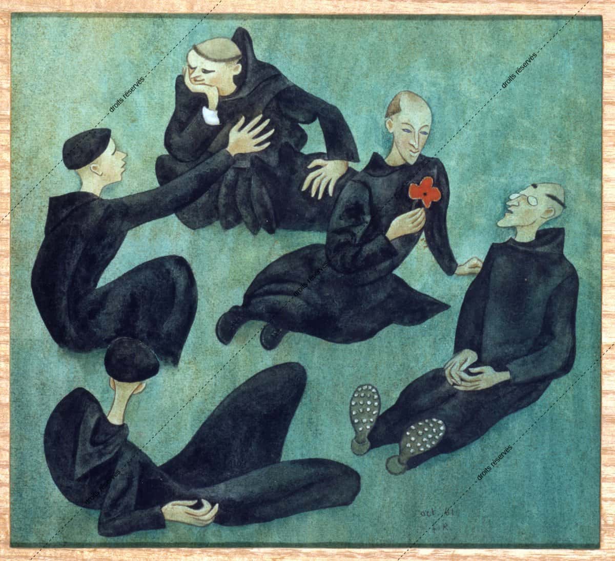 Les aquarelles, enluminures, gouaches présentées dans cette galerie montrent les différentes facettes de cette expression picturale que Dom Robert a pratiquée tout au long de sa vie. La plupart font partie de collections particulières. Les pièces déposées au musée comportent un * après leur titre.