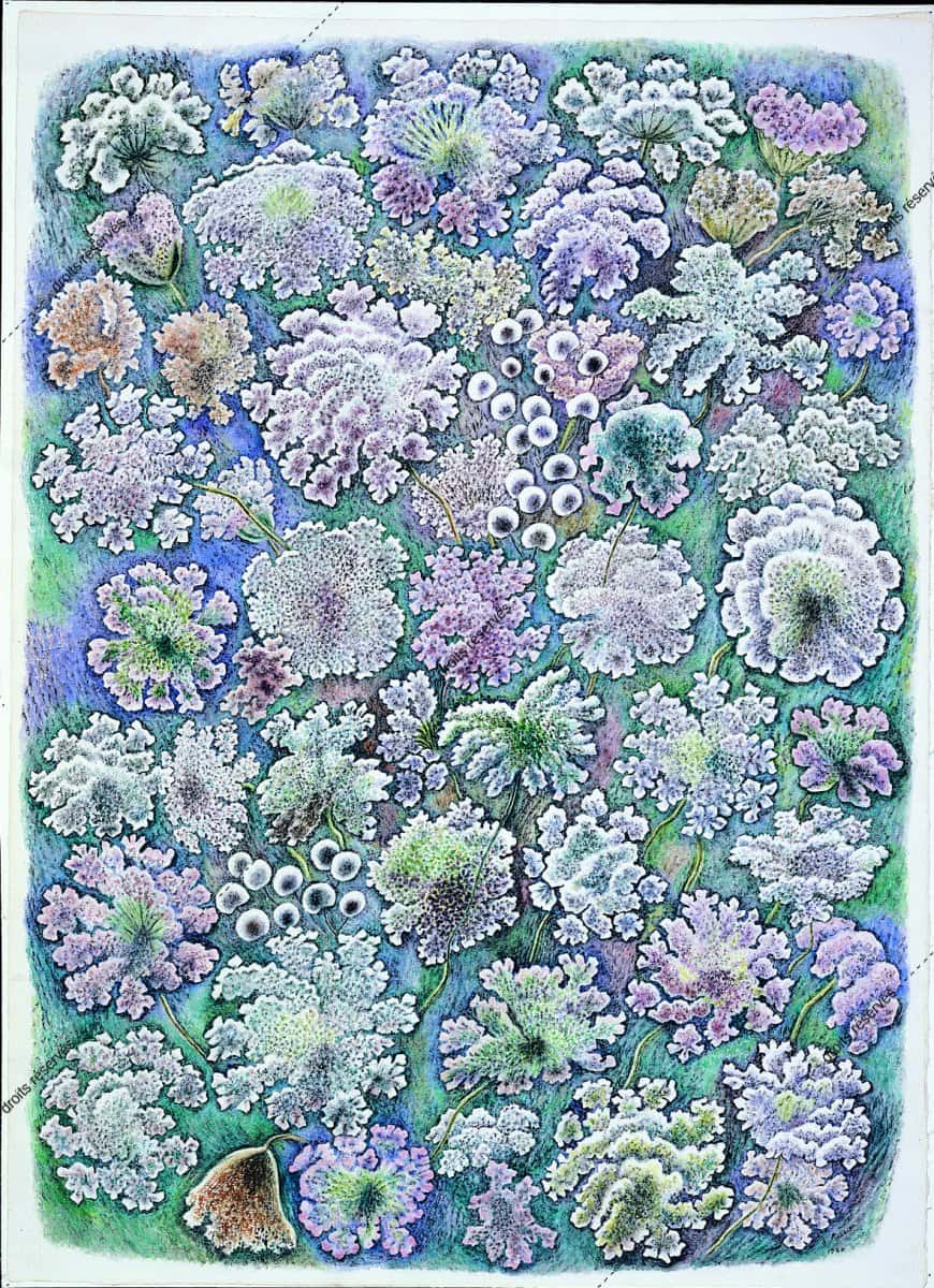 Ombelles bleutées et mauves et papillons