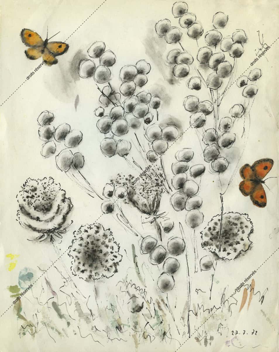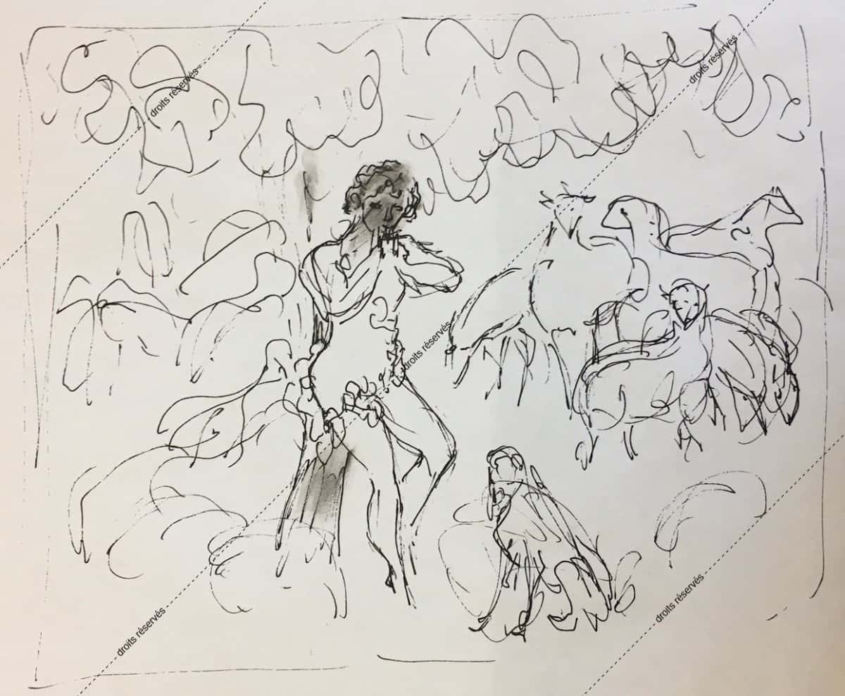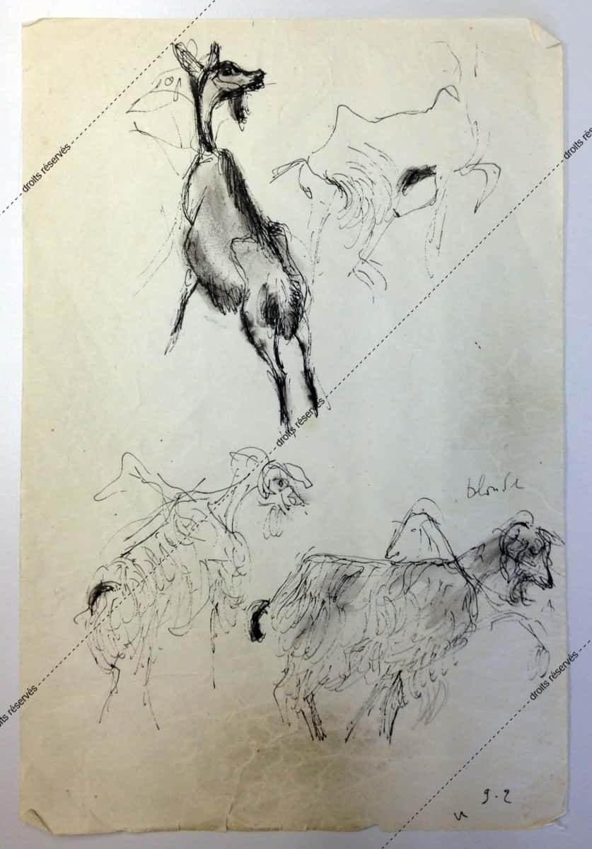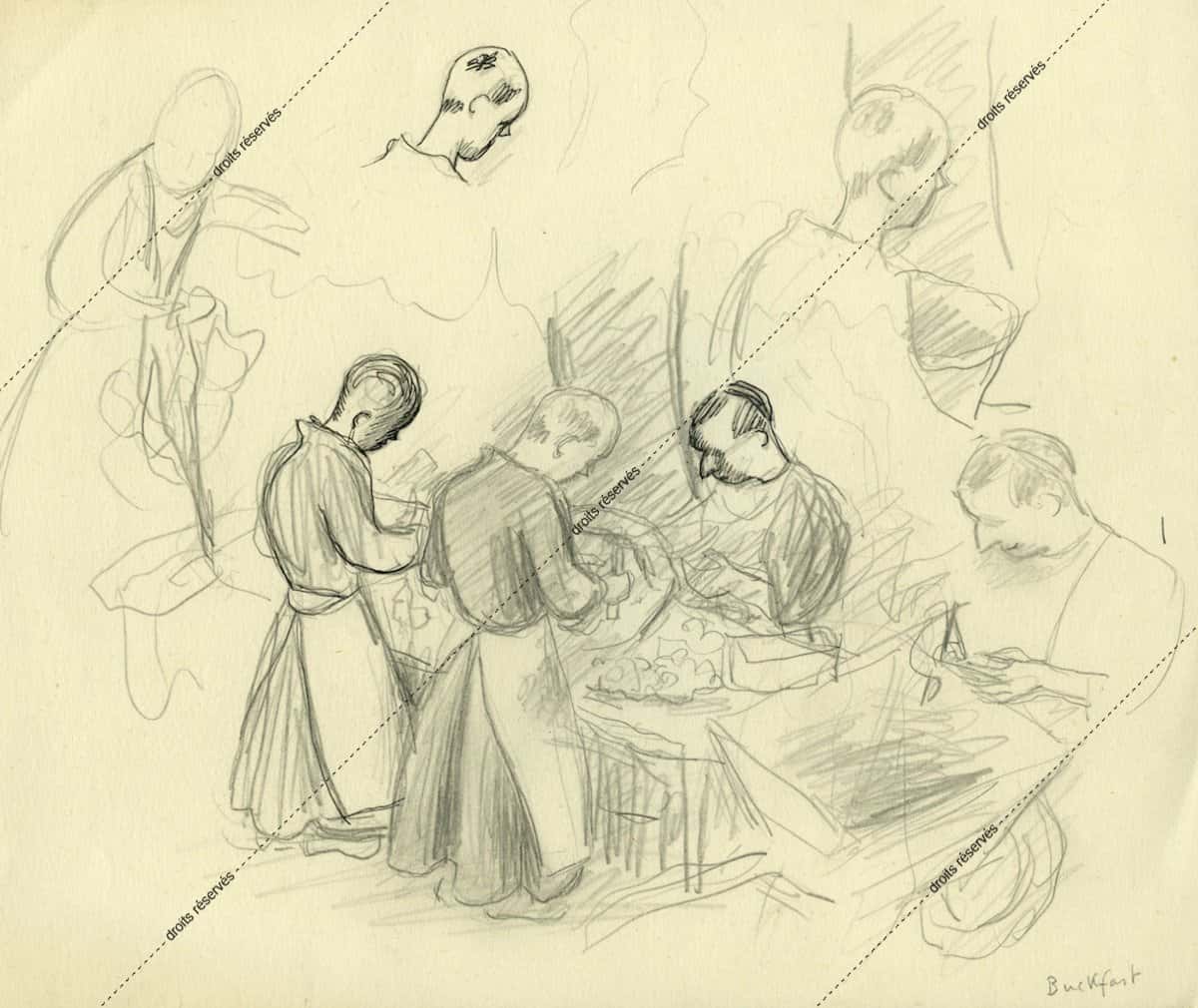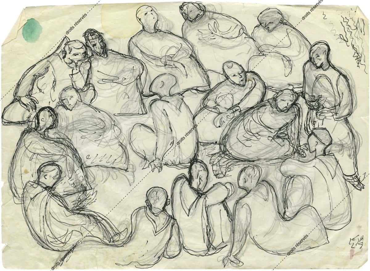 Choisis au sein des carnets ou parmi les feuillets libres de la collection déposée au musée Dom Robert, les dessins présentés dans la galerie montrent un florilège des différentes thématiques développées par Dom Robert.