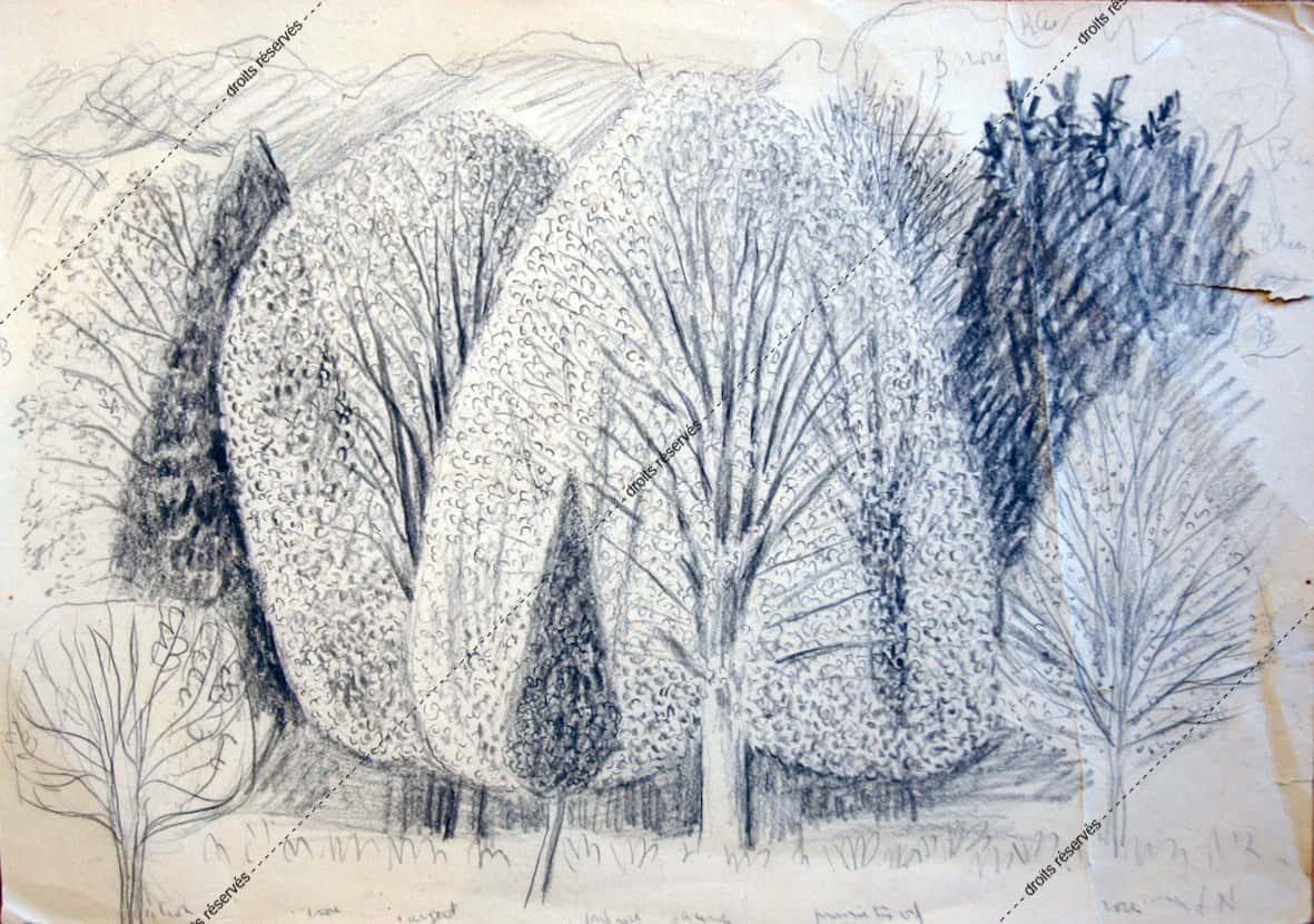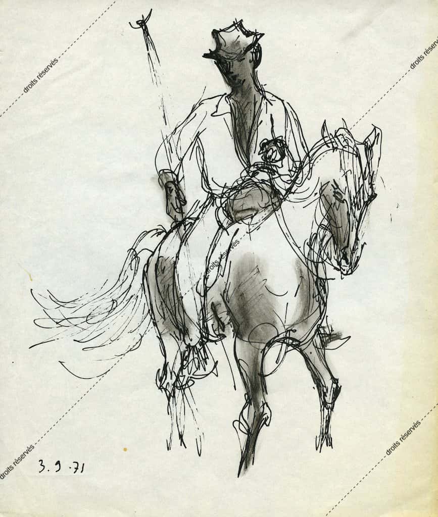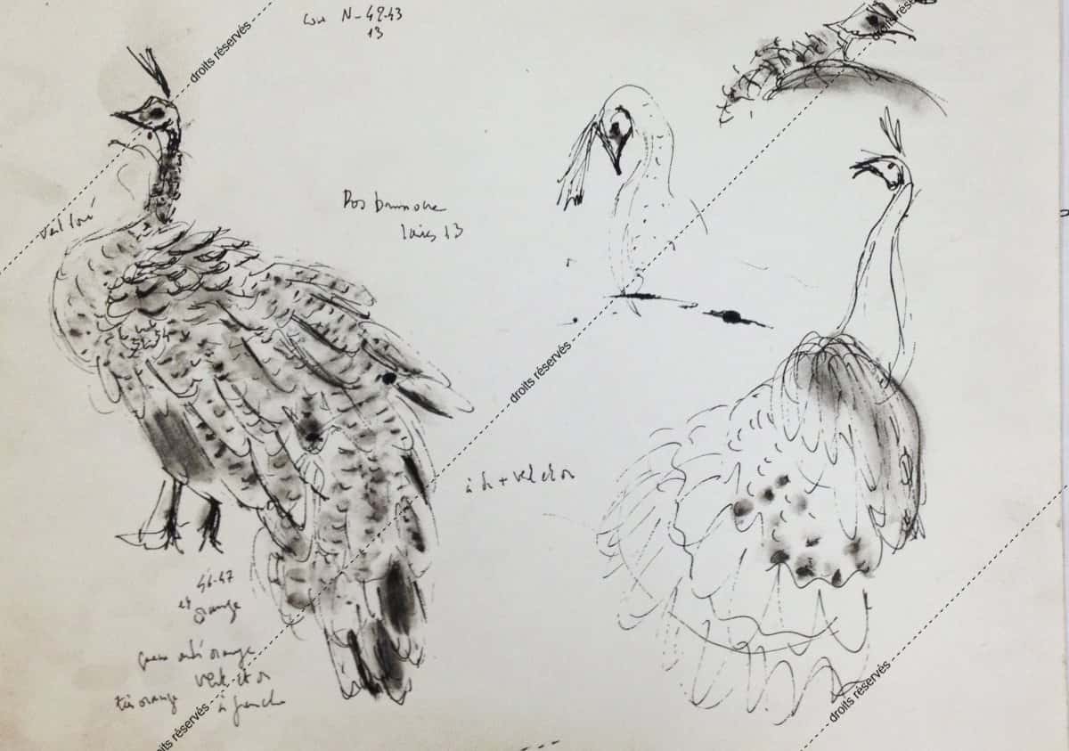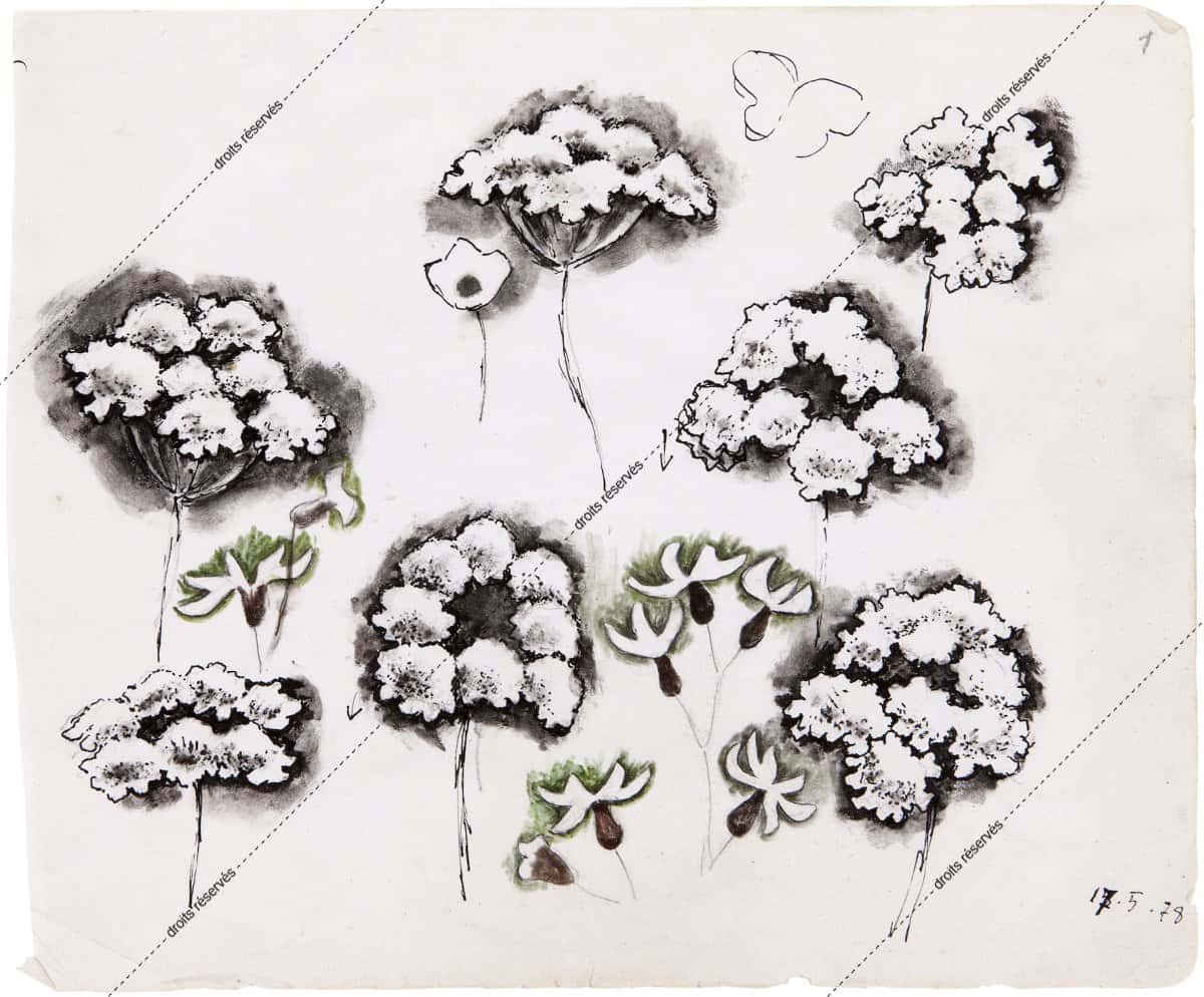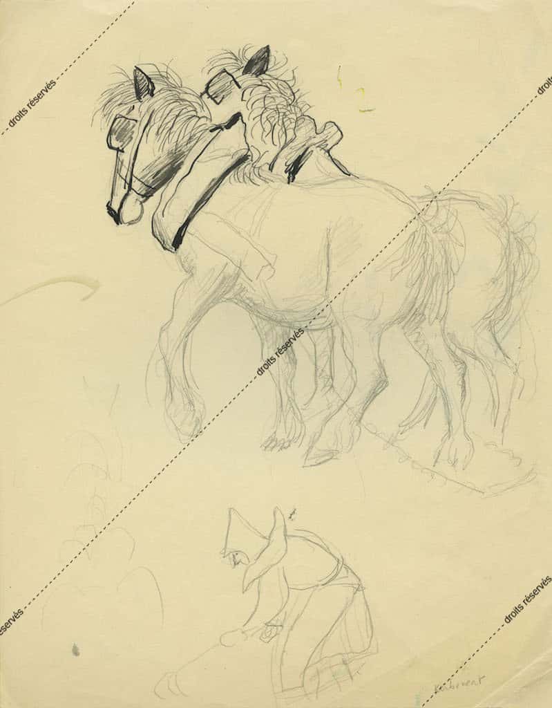 Choisis au sein des carnets ou parmi les feuillets libres de la collection déposée au musée Dom Robert, les dessins présentés dans la galerie montrent un florilège des différentes thématiques développées par Dom Robert.