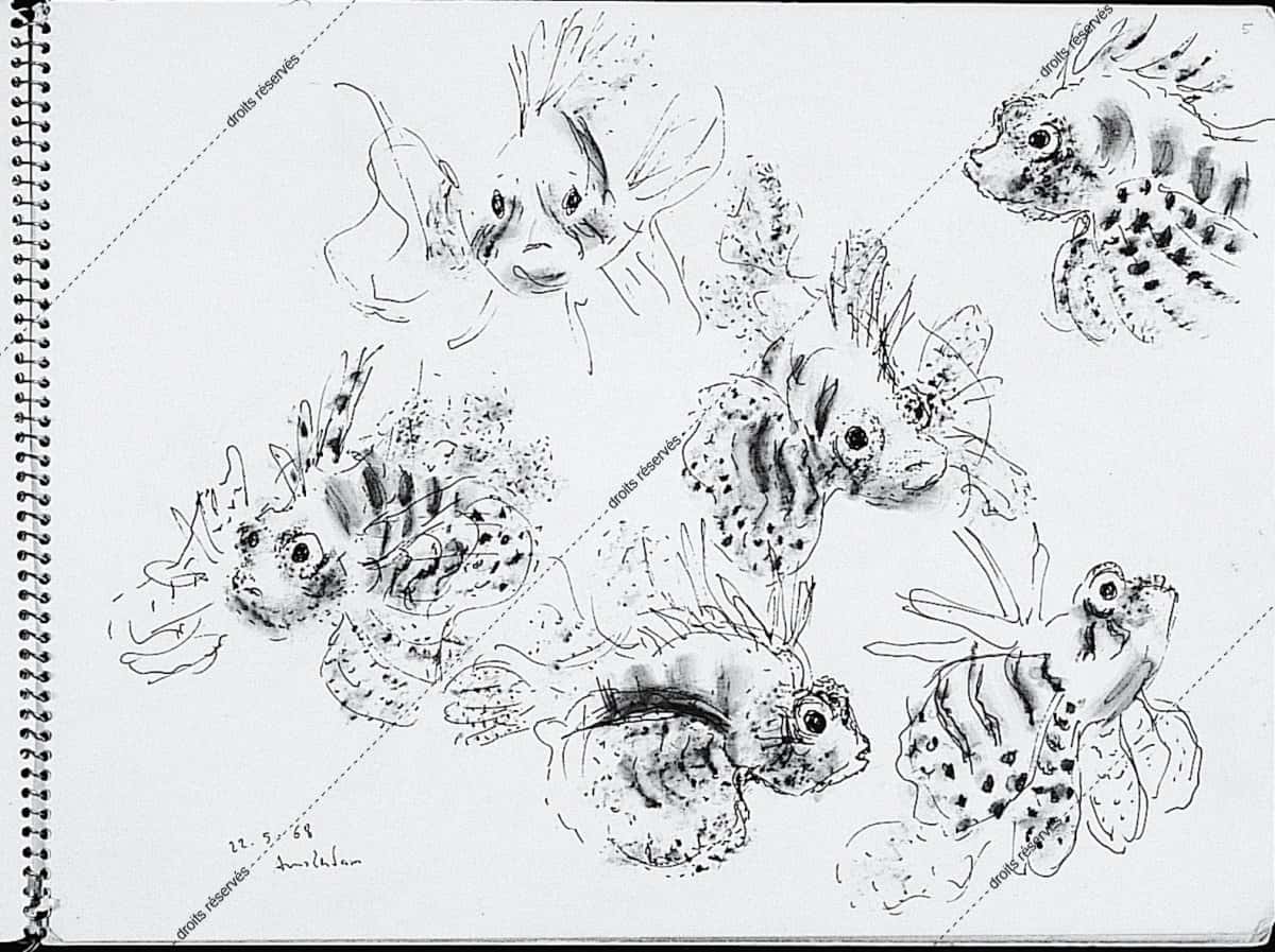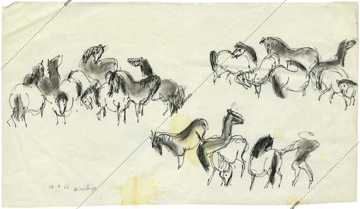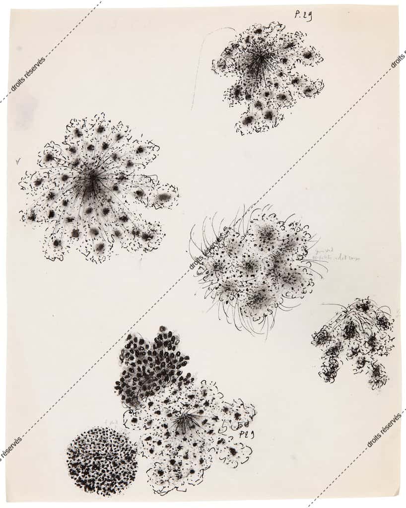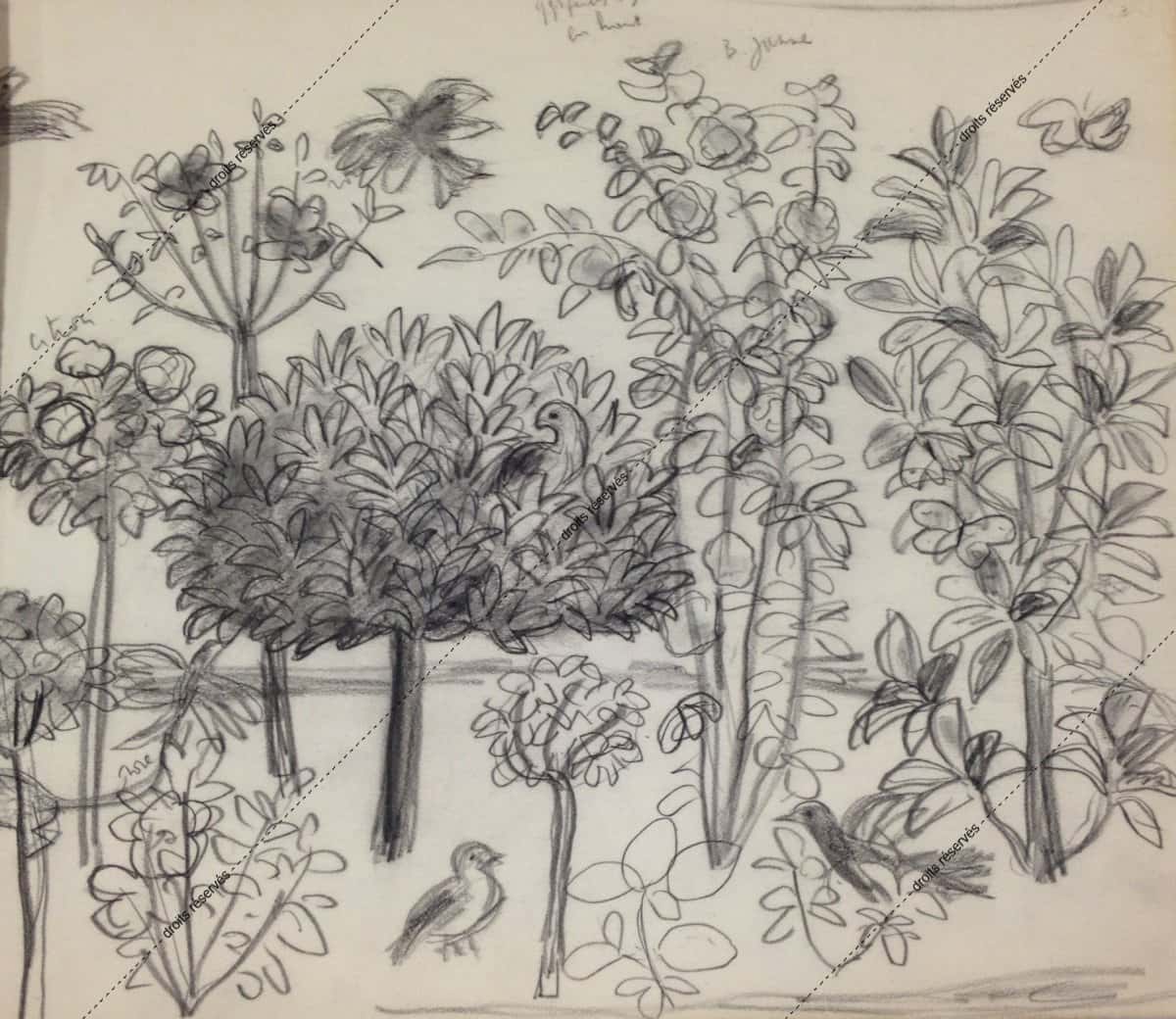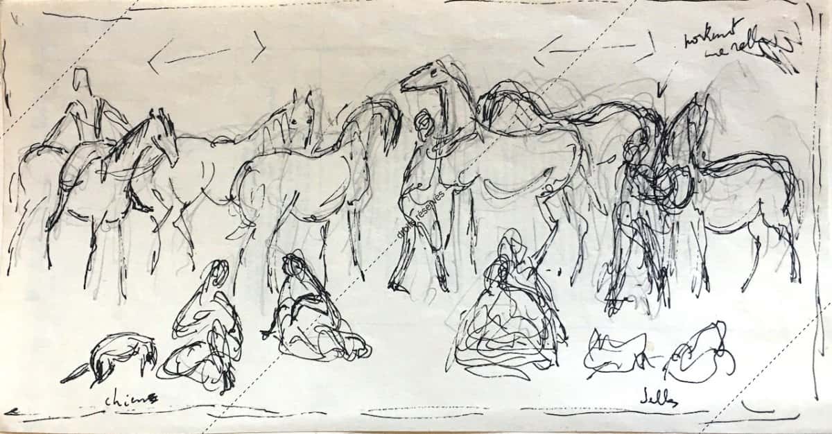 Choisis au sein des carnets ou parmi les feuillets libres de la collection déposée au musée Dom Robert, les dessins présentés dans la galerie montrent un florilège des différentes thématiques développées par Dom Robert.