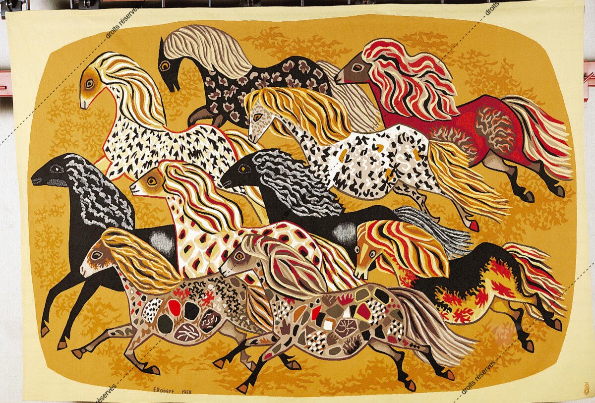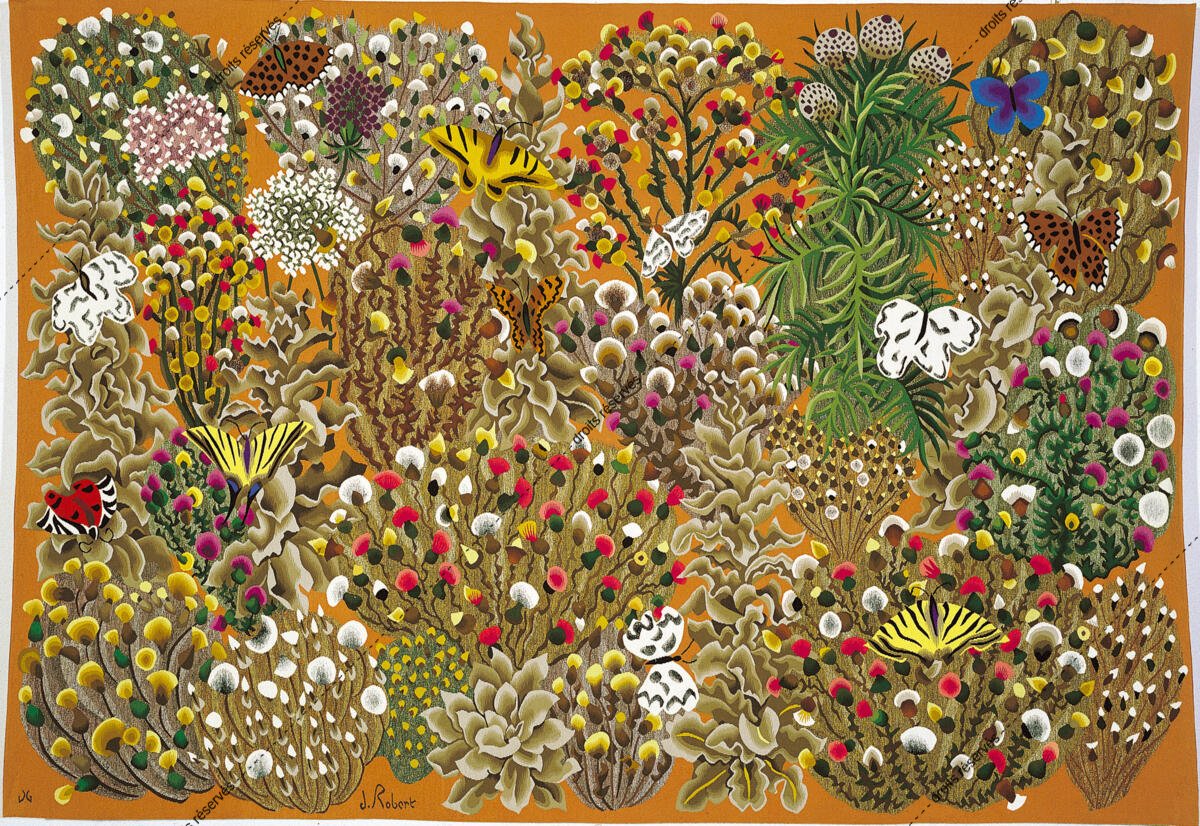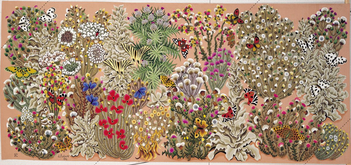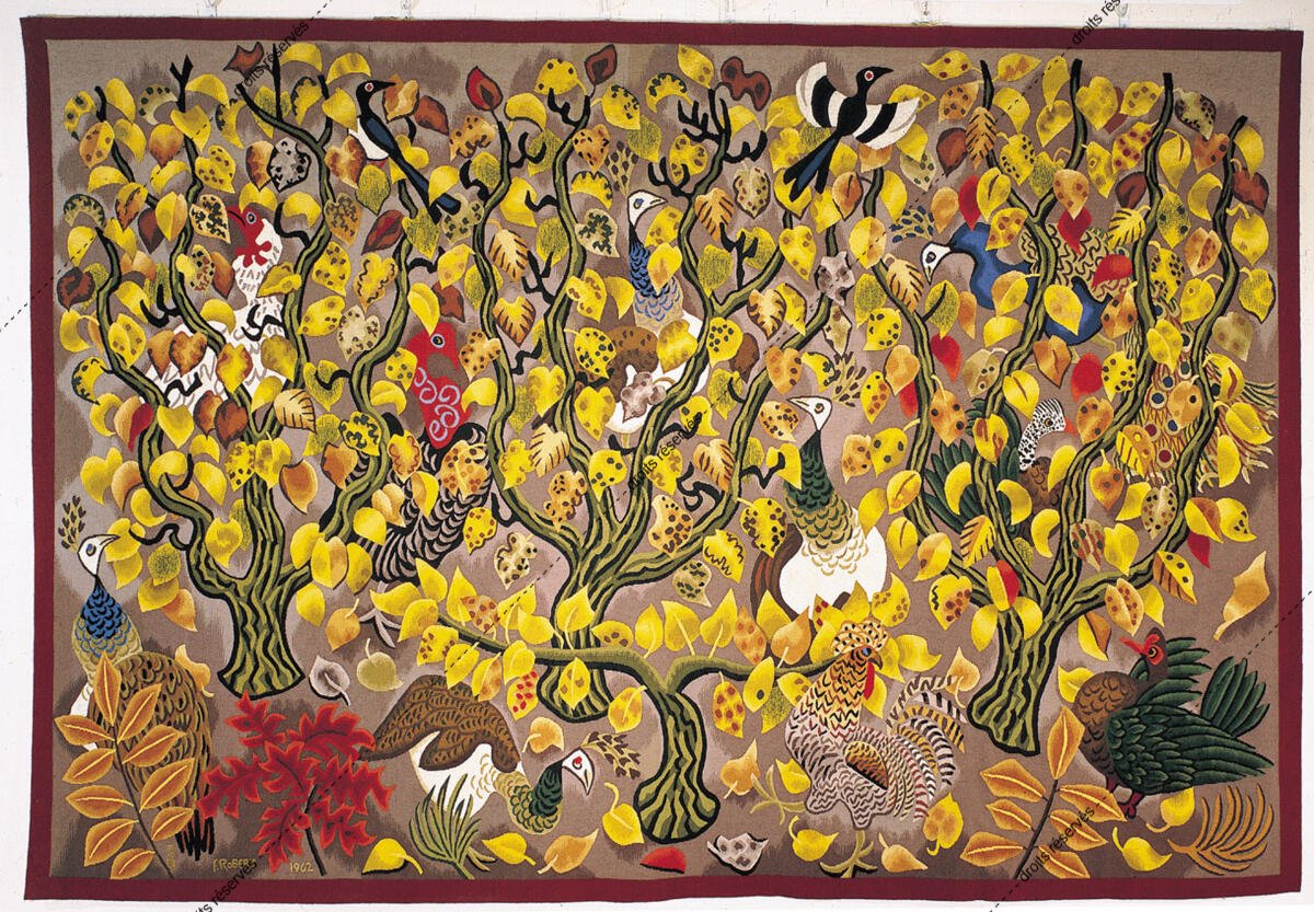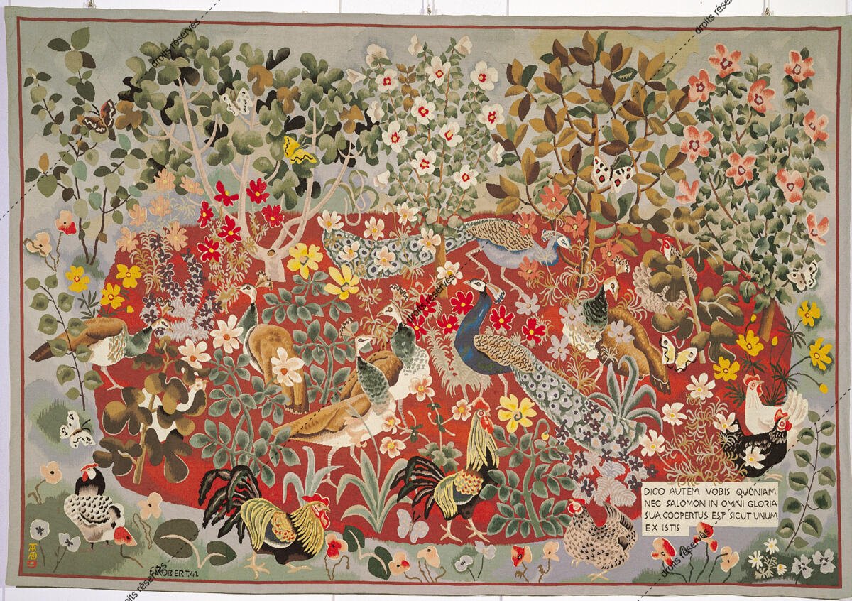 Les images des tapisseries de la galerie photo rendent compte de l'ensemble de l'œuvre tissé de Dom Robert, dans l'état de nos recherches à ce jour. Leur nombre dépasse donc largement celui des tapisseries de la collection du musée Dom Robert (Cité de Sorèze). La légende donne l'année de création du carton et le nom de l'atelier de tissage du 1er exemplaire. Les tapisseries de la collection Goubely-En Calcat déposées au Musée Dom Robert sont signalées par un * après le titre.