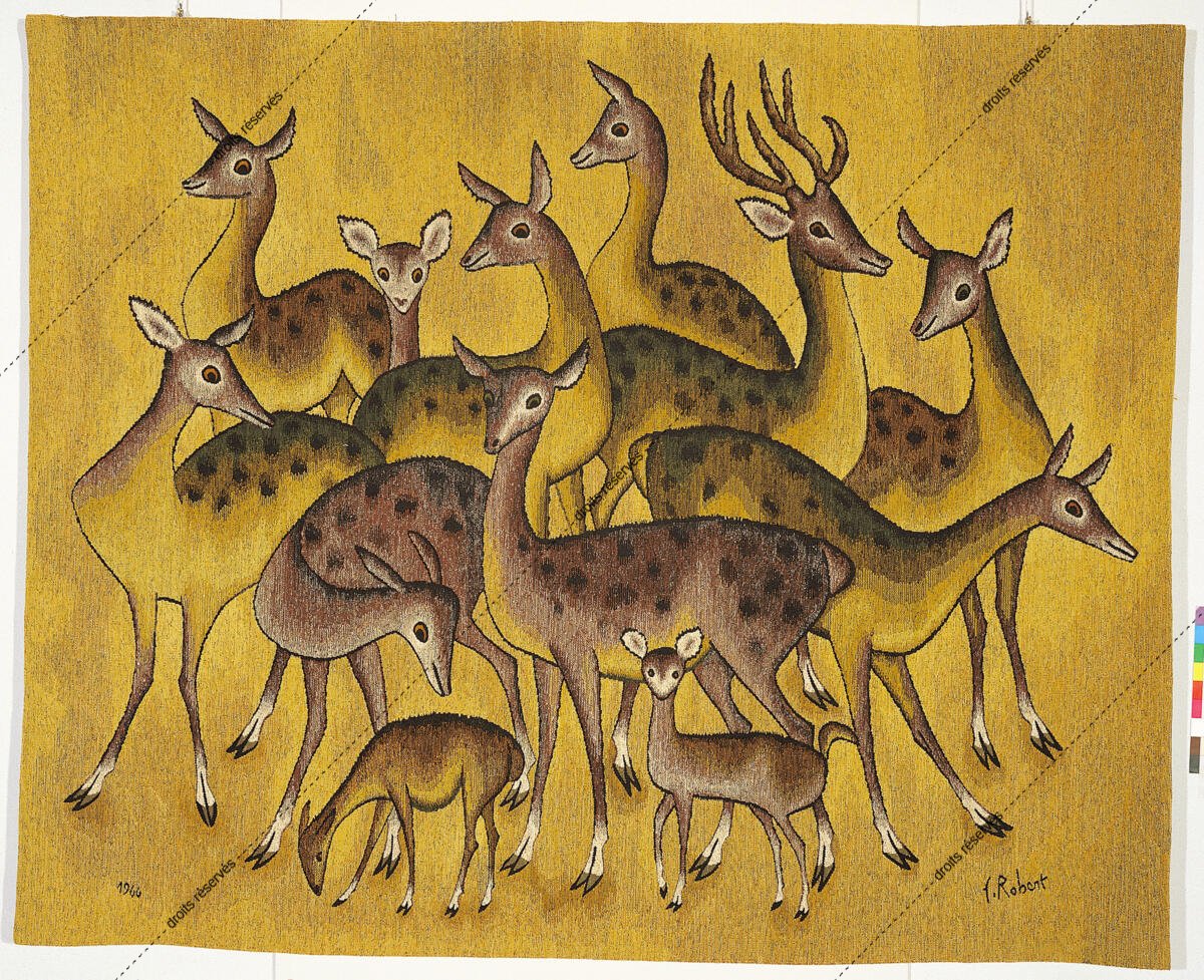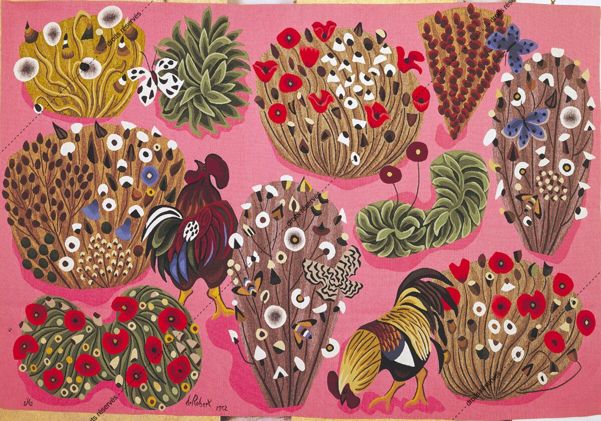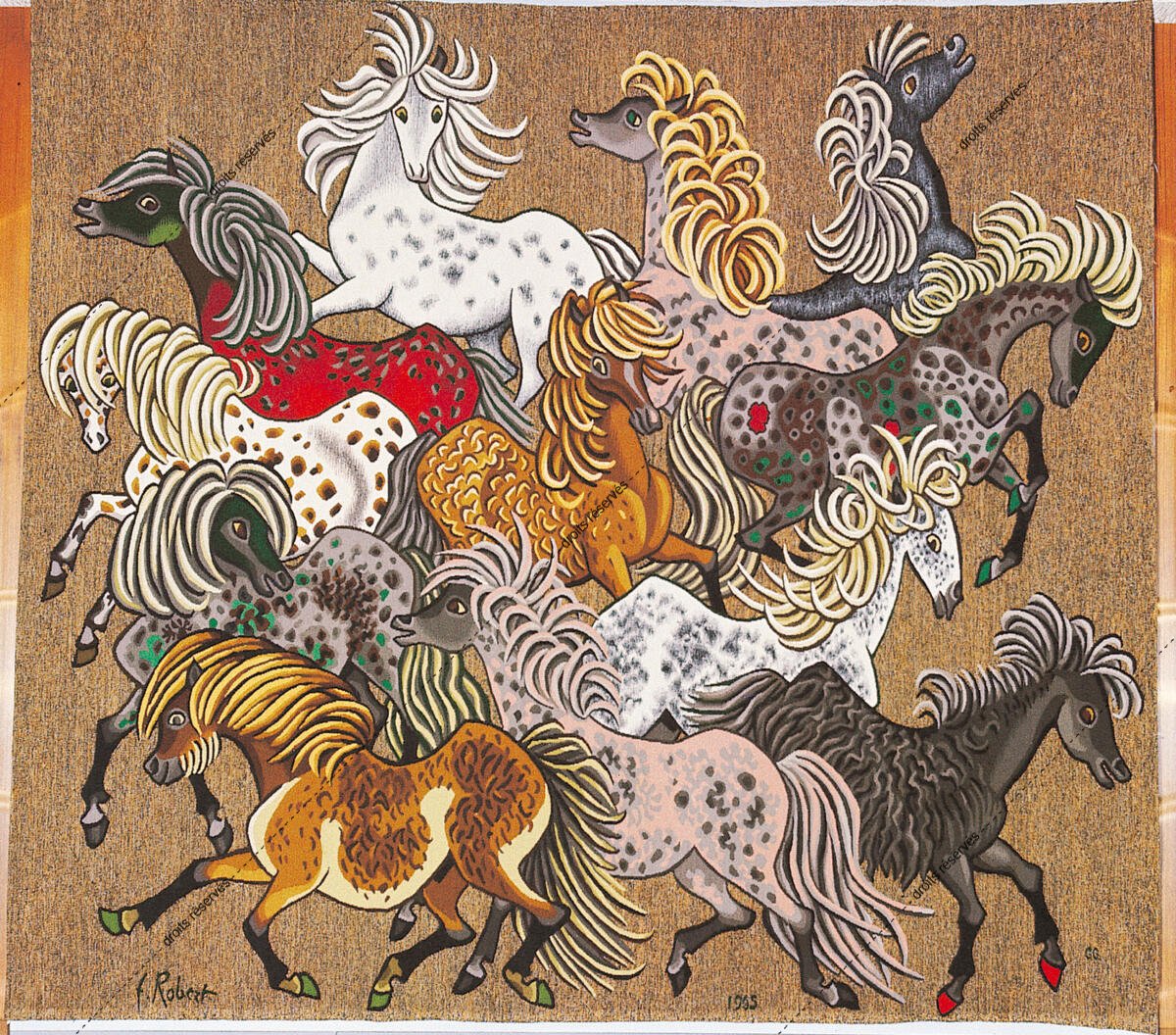 Les images des tapisseries de la galerie photo rendent compte de l'ensemble de l'œuvre tissé de Dom Robert, dans l'état de nos recherches à ce jour. Leur nombre dépasse donc largement celui des tapisseries de la collection du musée Dom Robert (Cité de Sorèze). La légende donne l'année de création du carton et le nom de l'atelier de tissage du 1er exemplaire. Les tapisseries de la collection Goubely-En Calcat déposées au Musée Dom Robert sont signalées par un * après le titre.