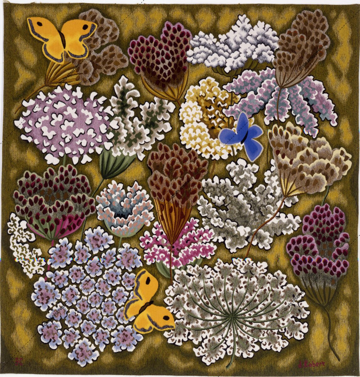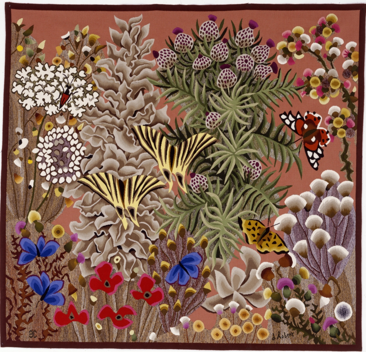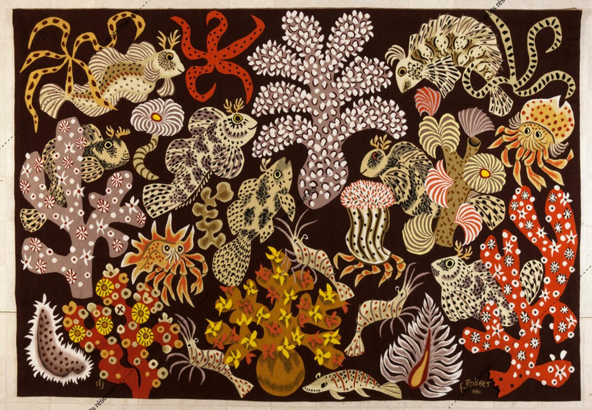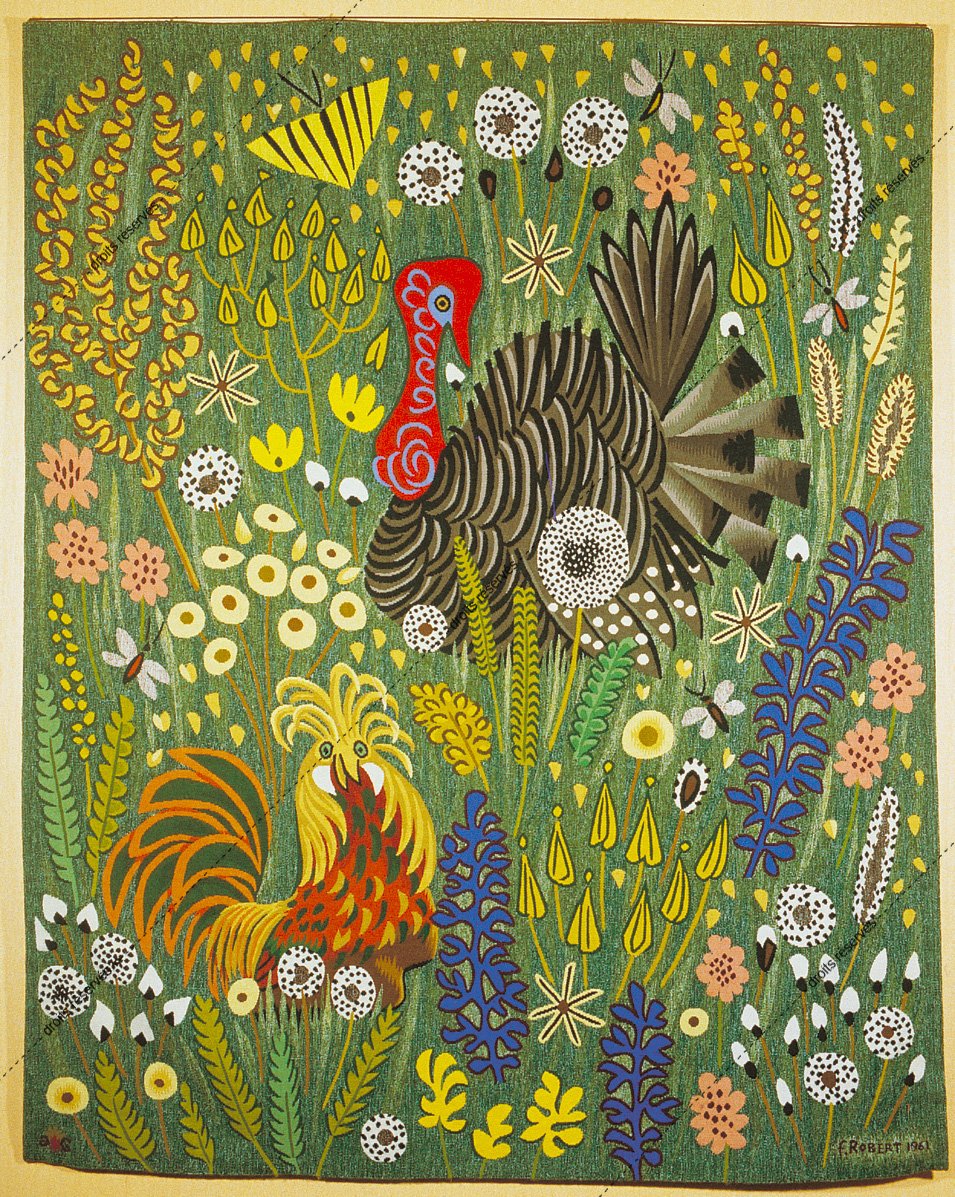 Les images des tapisseries de la galerie photo rendent compte de l'ensemble de l'œuvre tissé de Dom Robert, dans l'état de nos recherches à ce jour. Leur nombre dépasse donc largement celui des tapisseries de la collection du musée Dom Robert (Cité de Sorèze). La légende donne l'année de création du carton et le nom de l'atelier de tissage du 1er exemplaire. Les tapisseries de la collection Goubely-En Calcat déposées au Musée Dom Robert sont signalées par un * après le titre.